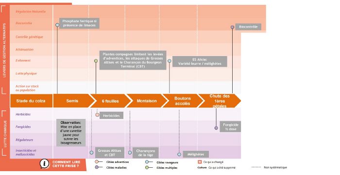 - Insecticides au printemps : charançons de la tige en fonction de la pression mélighètes : peut être évité grâce à la variété ES Alicia.