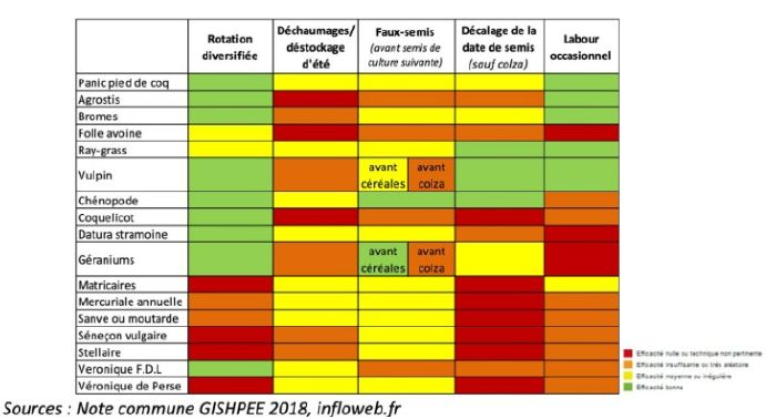 - D’esquiver la période préférentielle de levée des graminées si les conditions agro-climatiques sont réunies (sol affiné, réhumectation des sols).