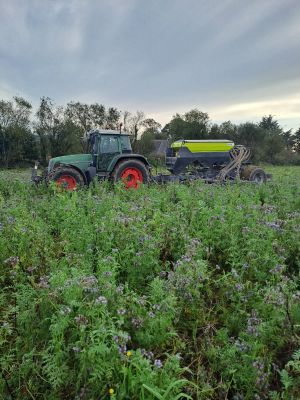 Les flageolets étant récoltés le 07/09, il n’y avait pas assez de temps pour semer un couvert entre cette culture et le blé suivant. Pour remédier à ce problème, Marc a acheté un semoir qui lui permet d’implanter son couvert dans les flageolets, ainsi, une fois les légumes récoltés, le couvert peut se développer. Il arrivera même à un mètre de haut lorsque l’agriculteur sèmera son blé à l’intérieur !