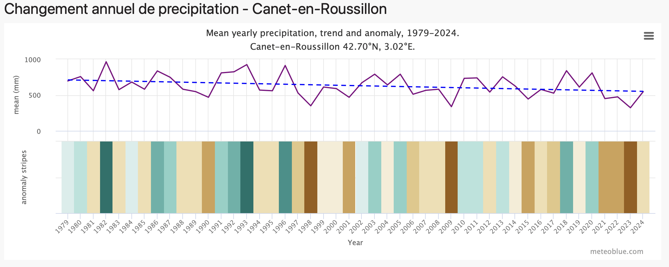 Fichier:Changement annuel des précipitations à Canet en Roussillon.png