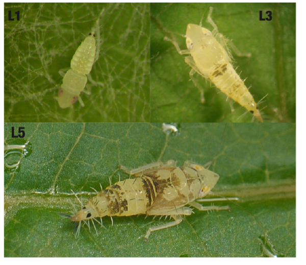 Figure 3: Cycle de vie de la Cicadelle de la Flavescence Dorée sur son hôte [7]