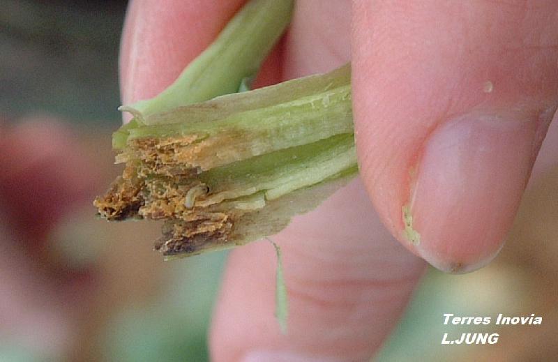 Destruction du bourgeon terminal possible, en cas d’une forte attaque ou de plantes chétives.