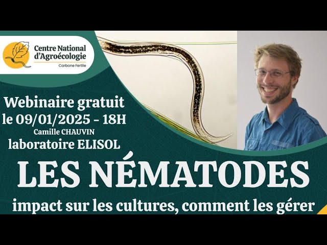 Ce webinaire aborde l’impact des nématodes sur l’agriculture, avec Camille Chauvin comme intervenant, soulignant leur rôle en tant que bioindicateurs des sols.