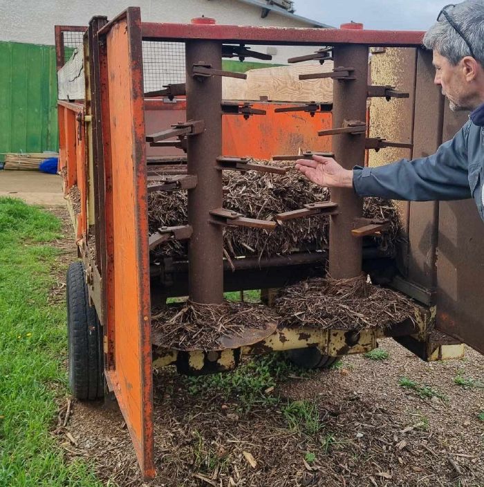 - En hiver, les principaux travaux sont la taille raisonnée des sarments et l’épandage de 20 t/ha broyats de bois.