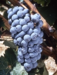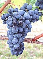 Grappes moyennes, tronconiques, ailées, compactes, pédoncules longs en grande partie lignifiée; baies moyennes, sphériques ou elliptiques courtes, peau pruinée d'une belle couleur noir bleuté. Le feuillage rougit totalement à l'automne.