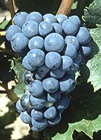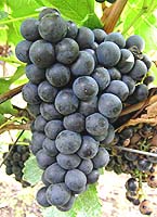 Grappes moyennes, tronconiques courtes, peu ou pas ailées, compactes; baies petites à moyennes irrégulières, sphériques, peau pruinée d'un beau noir bleuté, chair très pulpeuse.