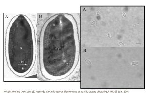 La nosémose est une maladie contagieuse due à une microsporidie (Nosema apis ou Nosema ceranae (la plus fréquente)) qui se multiplie dans les cellules de la paroi intestinale des abeilles.
