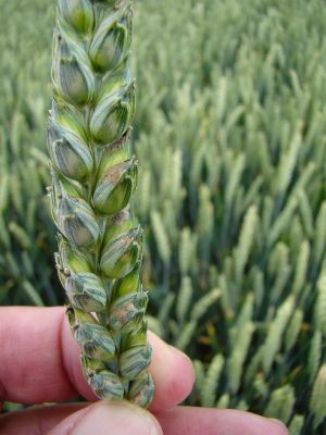 La présence d’oïdium sur la base de la tige n’est pas préjudiciable à la culture. Le champignon se déploie à partir des feuilles pour toucher ensuite l’épi, où il réduit le rendement.