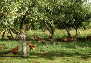 • poules (charge d’environ 500/ha pour des adultes et 1500/ha pour des jeunes)