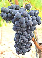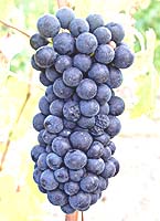 Grappes moyennes, tronconiques, compactes, flanquées quelquefois de petits ailerons; baies petites, sphériques ou légèrement ovoïdes, d'un beau noir bleuté, chair peu juteuse à saveur herbacée.