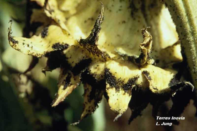 Décoloration des capitules et des feuilles porteuses. Peu nuisible, ils ne provoquent pas de crispations.