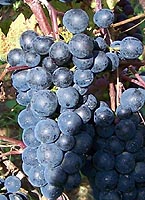 Grappes petites à moyennes, tronconiques, compactes, pédoncules moyens violacés pratiquement pas lignifiés; baies moyennes, arrondies ou elliptiques courtes, peau pruinée de couleur noir bleuté, pulpe molle avec un jus coloré à saveur foxée et herbacée et présence d'anthocyanes diglucosides (pour plus d'infos, cliquez ici !).