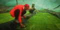 Hamid Majjaoui, Ouvrier de la ferme en train d'aplatir l'herbe avec la planche